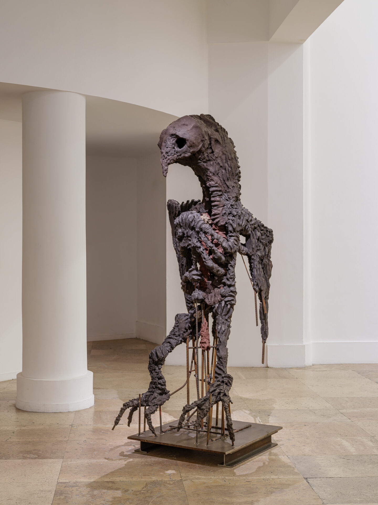 Ciment, pouzzolane, chaux, pigments, fer à béton et filasse végétale